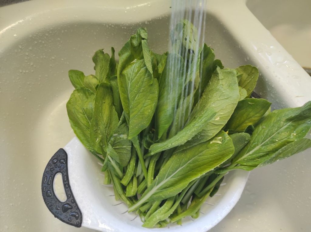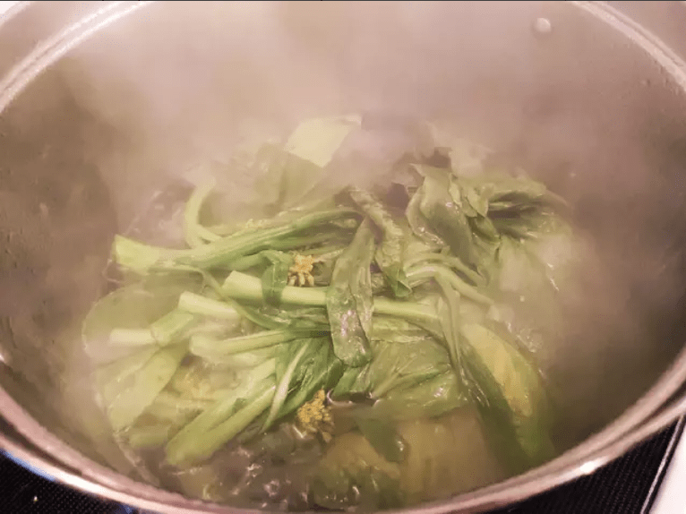 Rinse u choy sum and add it to boiling water for 3-4 minutes till it is cooked. Transfer it to a dishware.