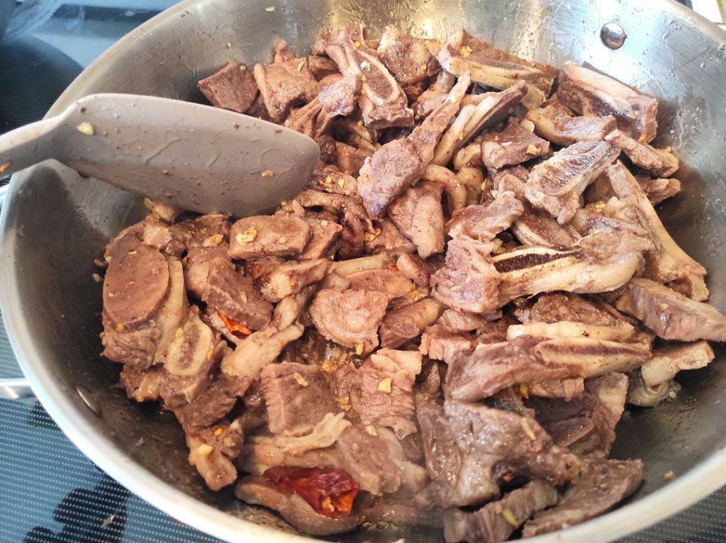 To make this dish successfully, you need to use fatty beef. Half lean and half fat beef flank is normally used for this dish. Since the beef short ribs at my store are quite fatty, I always use them to substitute beef flank.