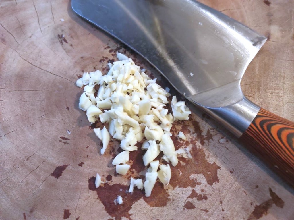 Heat the wok with medium high heat, then add oil, garlic and beef.