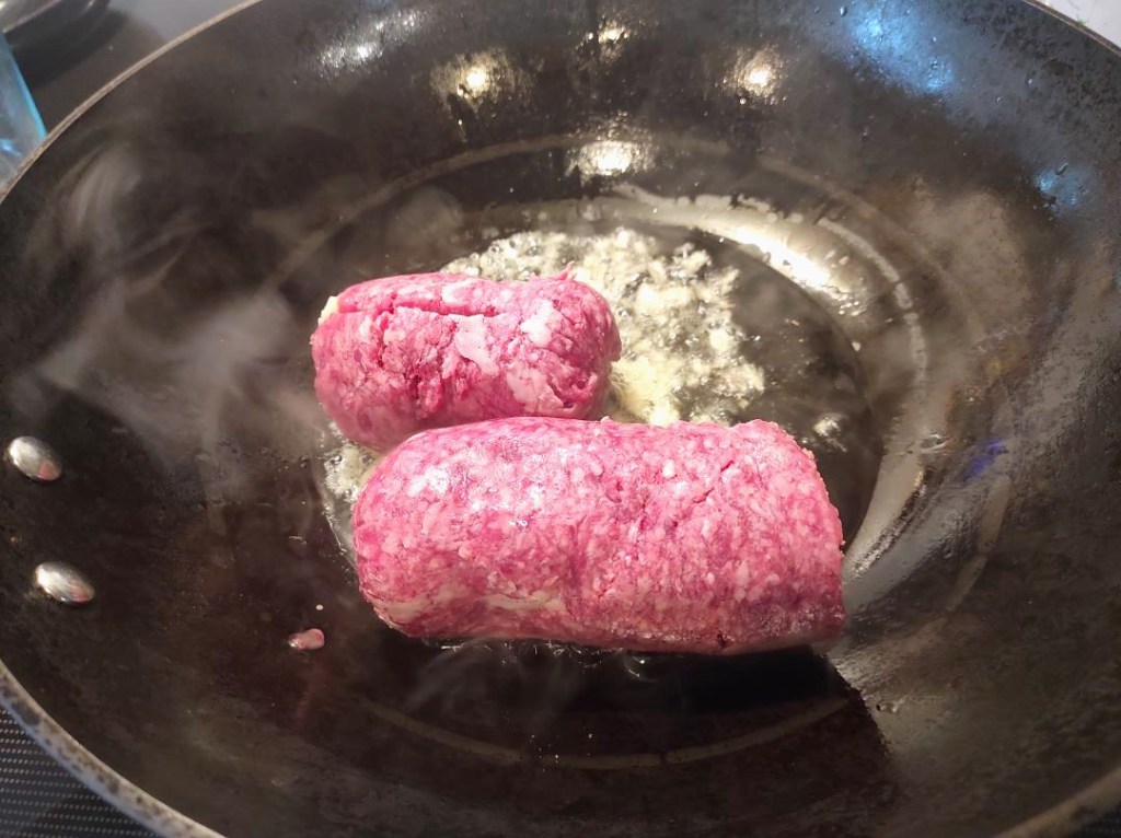 Stir the ground beef till it’s not pink anymore. Start stirring before the oil reaches high temperature can make beef more crumbly.